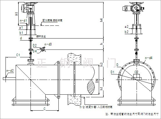 1、成套供應范圍:操縱臺一件、閘閥一件、短管一件、連接桿一件,用于閘閥和短管法蘭連接的膠墊一件,電動機和渦輪箱一件。