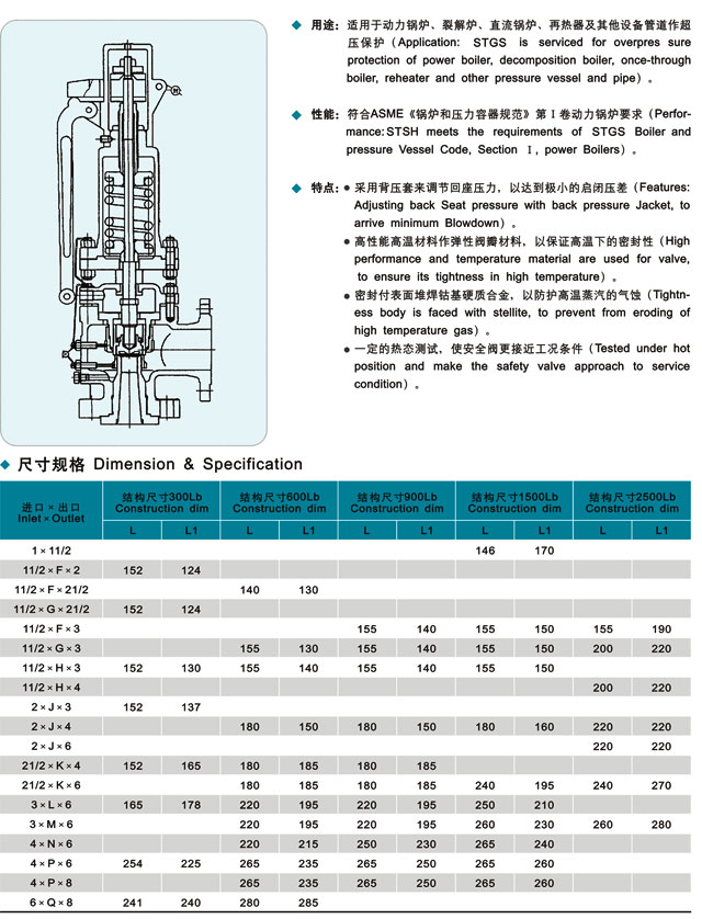 高性能蒸汽安全閥適用于動力鍋爐、直流鍋爐、再熱器和其它設備及管道的超壓保護。
