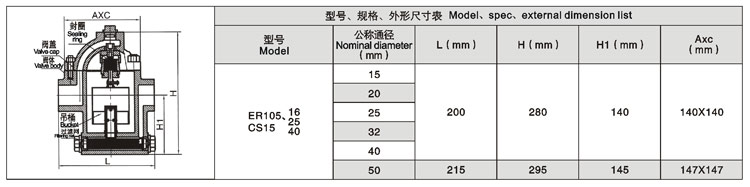 鐘型浮子式蒸汽疏水閥主要零件材料和性能參數 Main parts and specifications
