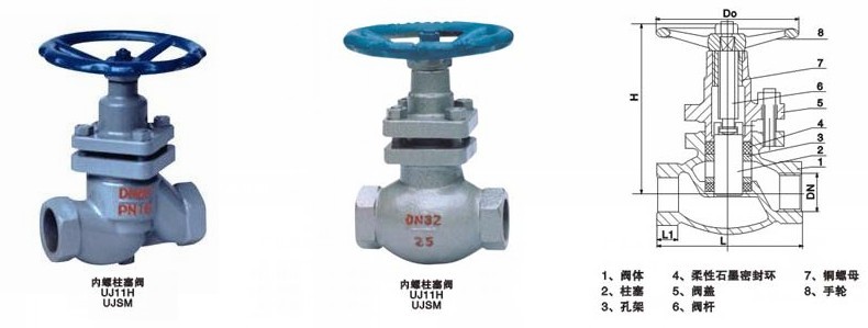 內螺紋柱塞閥可在任意位置安裝,介質流動方向見閥體上箭頭所示。經過一段時間的使用密封環如有磨損及滲漏必須先將閥門關閉后,在將法蘭螺栓均勻的略加旋緊以至于下滲漏即可。同時更換時應防止內螺紋柱塞閥和新裝密封環裂痕和碰傷。在短時間內,冷熱交替溫差較大的管道中,柱塞閥不能使用。