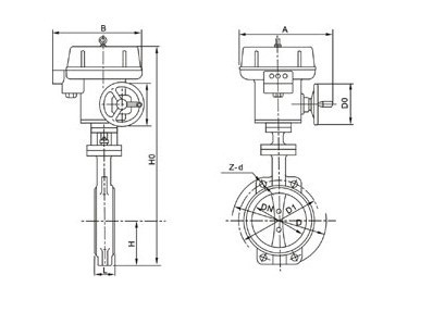 電動對夾式軟密封蝶閥外形尺寸