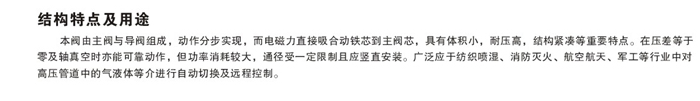 特點:在零壓差或真空、高壓時亦能可*動作,但功率較大,要求必須水平安裝。
