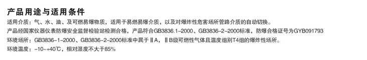 內(nèi)外泄漏是危及安全的要素。其它自控閥通常將閥桿伸出,由電動、氣動、液動執(zhí)行機(jī)構(gòu)控制閥芯的轉(zhuǎn)動或移動。這都要解決長期動作閥桿動密封的外泄漏難題;唯有電磁閥是用電磁力作用于密封在電動調(diào)節(jié)閥隔磁套管內(nèi)的鐵芯完成,不存在動密封,所以外漏易堵絕。電動閥力矩控制不易,容易產(chǎn)生內(nèi)漏,甚至拉斷閥桿頭部;電磁閥的結(jié)構(gòu)型式容易控制內(nèi)泄漏,直至降為零。所以,電磁閥使用特別安全,尤其適用于腐蝕性、有毒或高低溫的介質(zhì)。