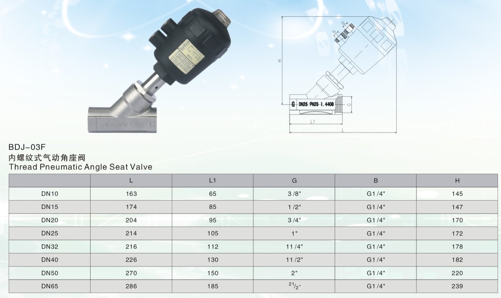 『內螺紋氣動角座閥』專業生產廠家,由正鋼自主生產的【角座閥】質量可靠、價格合理、售后服務完善。『內螺紋氣動角座閥』適用于各種輕重工業及樓宇管道。正鋼品質,全球共享!【角座閥】廣泛應用于:化工、石化、石油、造紙、采礦、電力、液化氣、食品、制藥、給排水、市政、機械設備配套、電子工業,城建等領域。