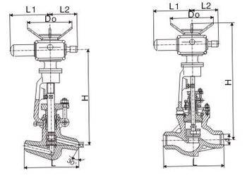 電動對焊截止閥結構尺寸: