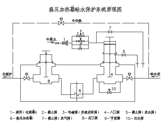 給水加熱器用進口閥(入口閥)、出口閥(出口止回閥)系列產品分別用于50MW-600MW鍋爐高壓加熱器進口和出口處,作為高加的保護閥門。高加運行過程中,當發生管系泄漏或疏水閥失靈等情況時會導致汽側水位升高,易造成高壓給水倒灌入汽輪機。為防止事故發生,當汽側水位達到報警水位時,電接點水位發訊器接點接通,快速啟閉電磁閥打開,凝結水進入進口閥活塞上方,進口閥瓣關閉,切斷進口高加的給水,同時旁路打開,給水經旁路進入鍋爐,高加解列,從而保證機組正常運行。高加投入時,進口閥閥瓣在系統內給水壓力作用下自動開啟并切斷旁路,給水經過高壓加熱器后進入鍋爐,從而提高電廠的熱效率并保證機組安全運行。