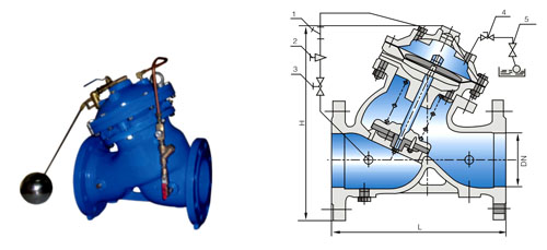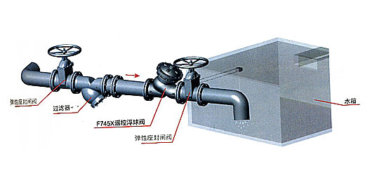 遙控浮球閥(F745X)是兼具多種功能的水力操作式閥門,主要安裝于水池或高架水塔的進水口處,當水位達到設定的高度時,主閥由浮球導閥控制關閉進水口停止供水;當水位下降后,主閥由浮球導閥控制打開進水口向水池注水,實現自動補水。