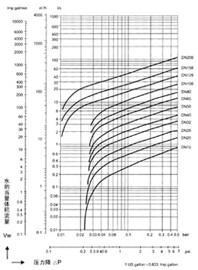 水的當量體積流量Vw與實際流體的體積流量V按下式換算: