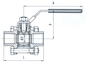 【三片式螺紋球閥結構圖】
