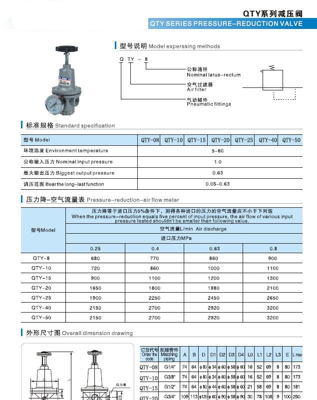 QTY空氣減壓閥主要性能參數